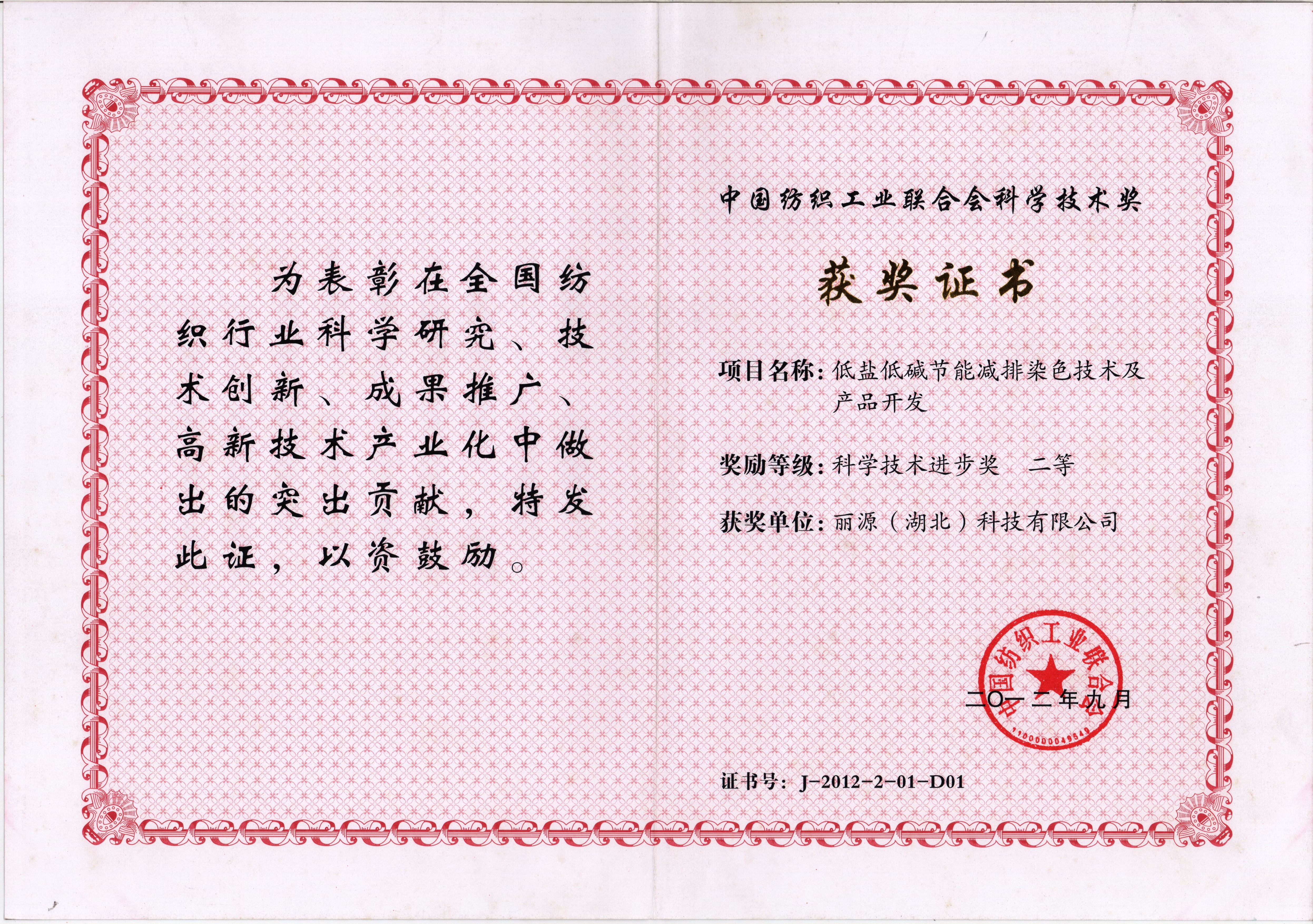 低鹽低堿節(jié)能減排染色技術(shù)及產(chǎn)品開發(fā) 科學技術(shù)進步獎 二等獎