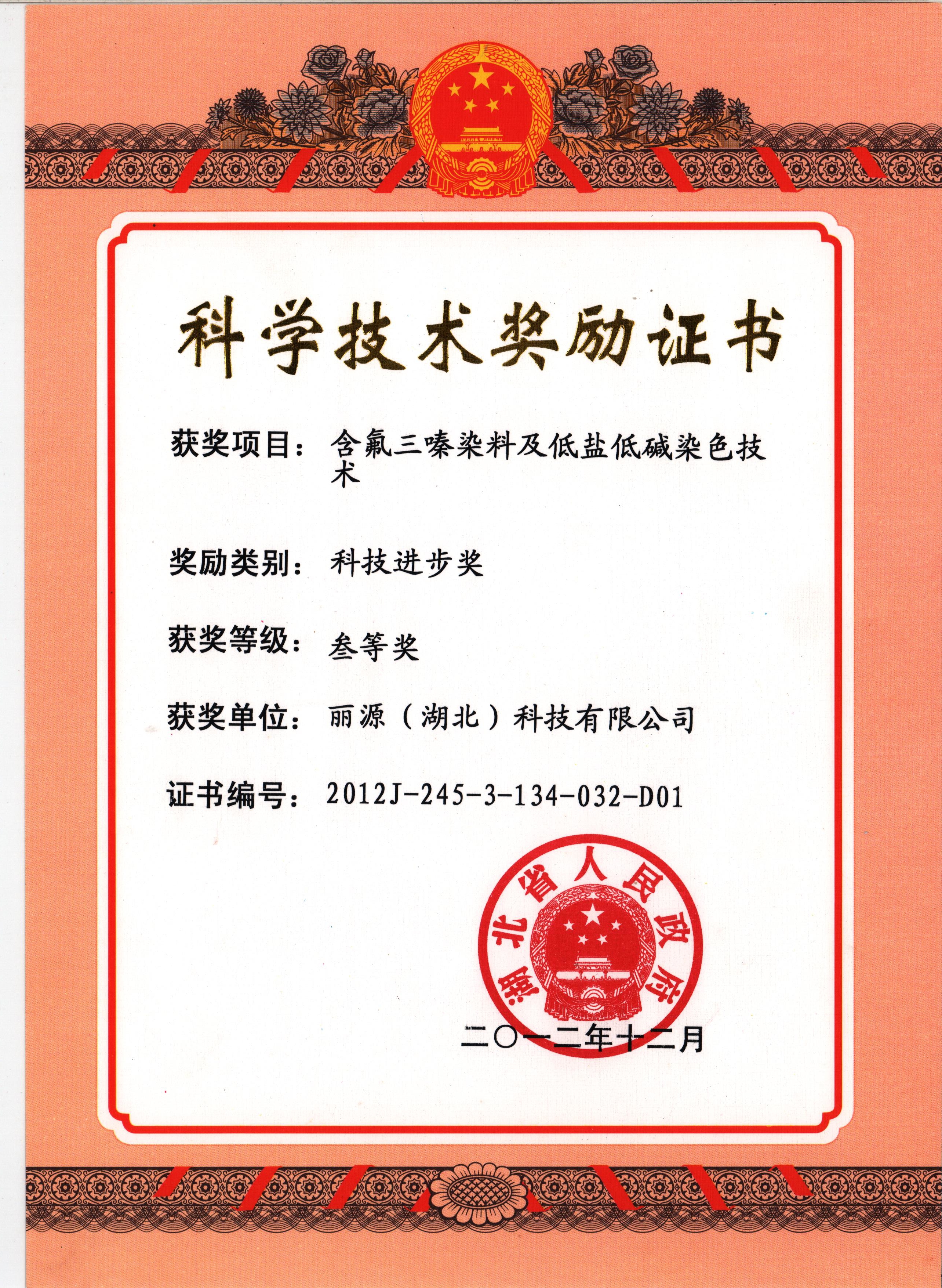 含氟三嗪染料及低鹽低堿染色技術(shù)科技進步獎三等獎